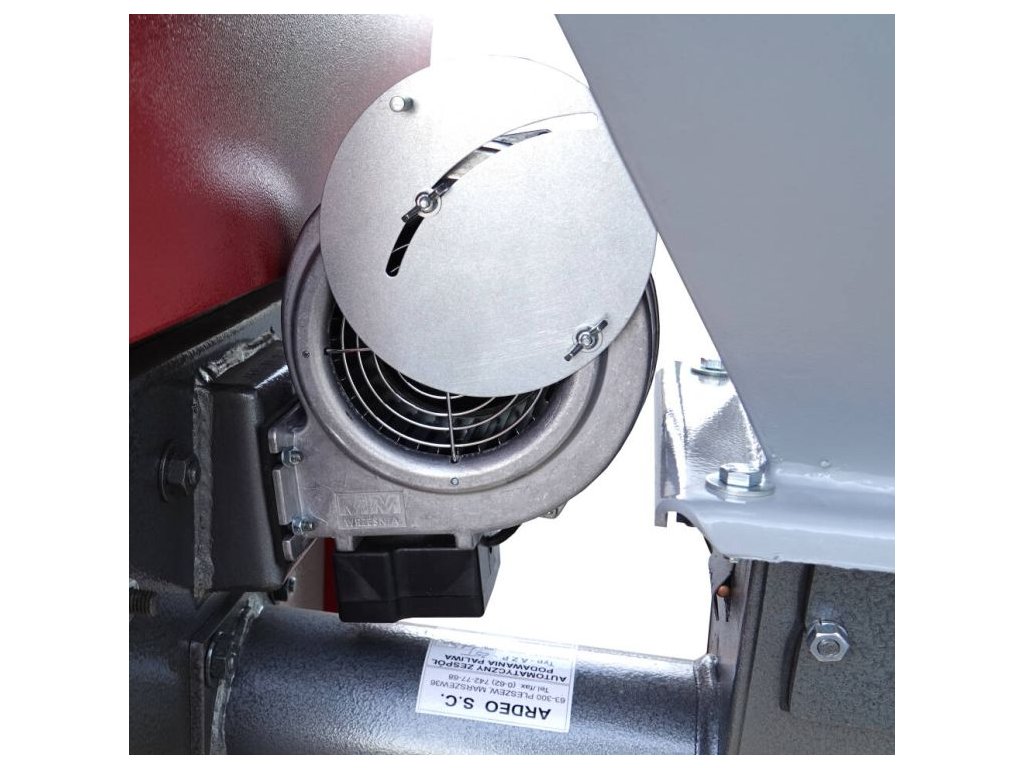 - ofukovací ventilátor - navržený pro přívod správného množství vzduchu do retortové pece. Množství přiváděného vzduchu je variabilní, regulované mikroprocesorovým regulátorem v závislosti na aktuální provozní teplotě kotle.