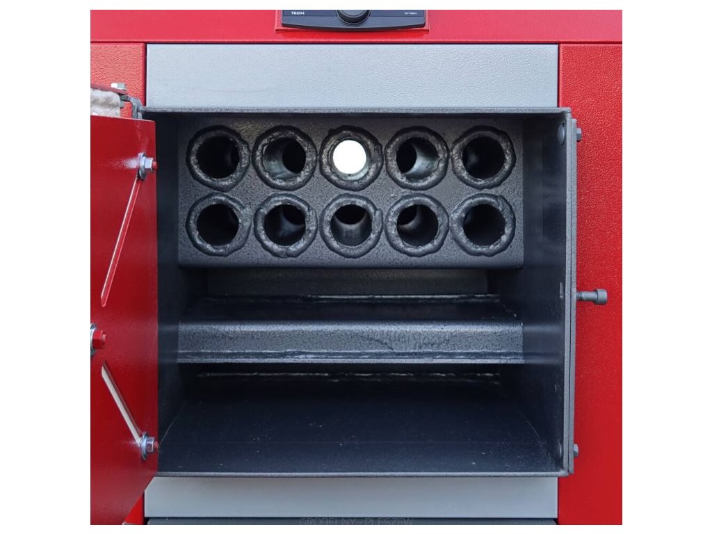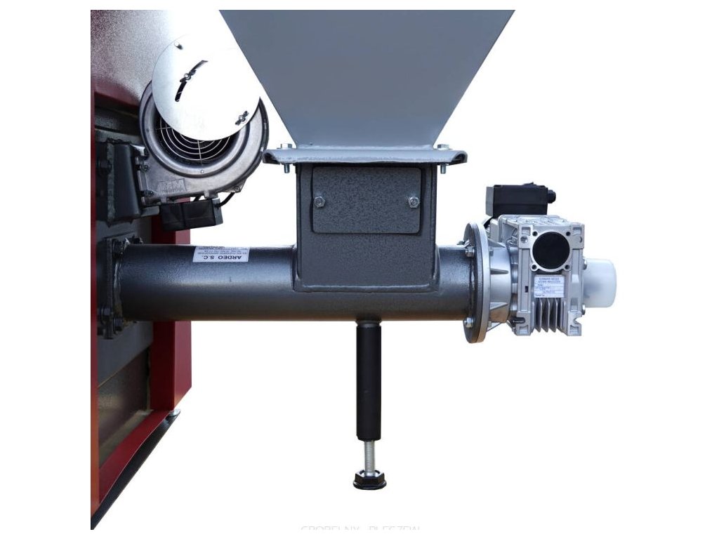 - retortový hořák na uhlí - namontovaný ve spodní části spalovací komory, na boku kotle. Skládá se ze šnekového podavače - poháněného motoreduktorem - sbírá palivo z bunkru a dodává ho do topeniště (retorty), kde probíhá spalovací proces. Nad hořákem je zavěšen profilovaný keramický deflektor. Konstrukce hořákové sestavy umožňuje její rychlou montáž a demontáž. Odpad ze spalování se shromažďuje v popelníku umístěném pod hořákem.