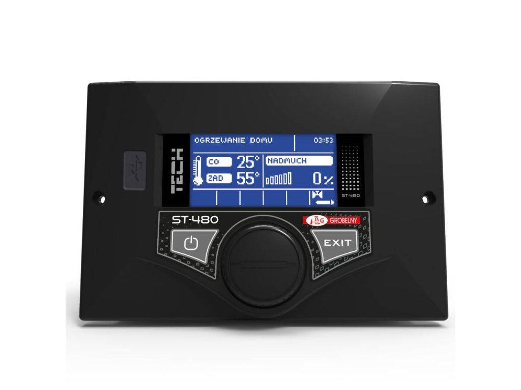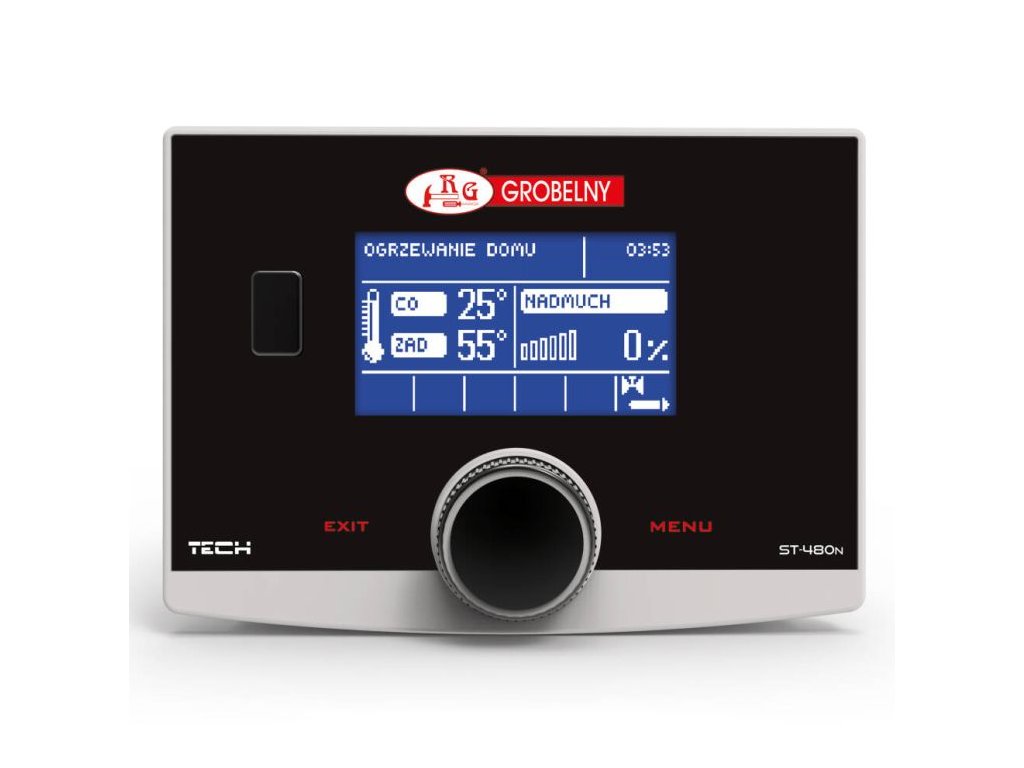 - mikroprocesorový regulátor - namontovaný v horní přední části pláště kotle. Regulátor umožňuje programovat provozní teplotu kotle a kdykoliv programovat změny jeho provozní teploty a přizpůsobovat výkon kotle aktuální potřebě. Regulátor je navíc vybaven čidlem pro řízení provozu a nouzového odstavení kotle (STB), po překročení teploty vody 95°C.